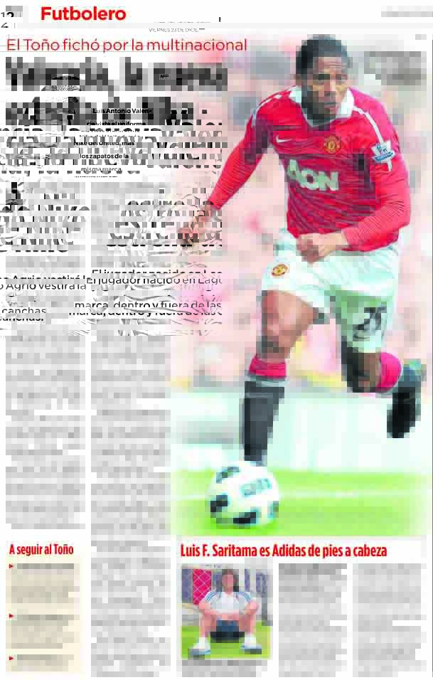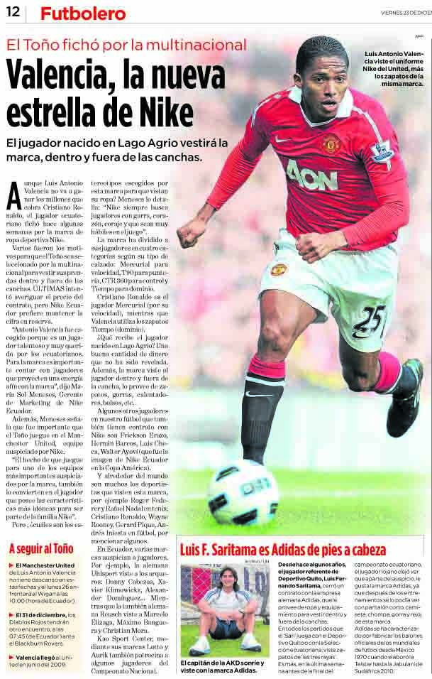 Hace algunas semanas, Luis Antonio Valencia cerró contrato con Nike. Acá les dejo la nota que escribí para Últimas Noticias (23/12/2011).