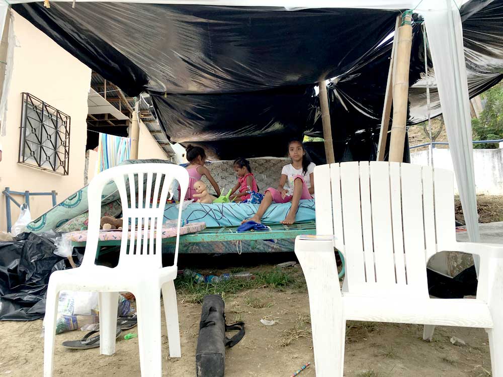 IMG_0891 Publicado 24 abril, 2016 en 1000 × 750 en La familia permanece unida tras el desastre Siguiente → El techo de la familia es un plástico que lograron improvisar.