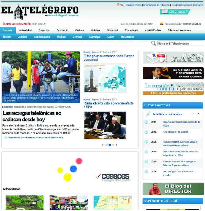 Su página web ha logrado posicionarse en el mercado nacional y ocupa el puesto 51 de las páginas más visitadas en Ecuador, según el ranking de Alexa. Su principal propuesta ha sido la actualización constante de noticias y su gran oferta de opinión. Su página está bien elaborada desde el punto de vista arquitectónico, con colores sobrios, secciones de interés, pero no llega a cumplir requisitos para ser un portal. La interactividad es mínima para los usuarios de esta web, aunque sí permite los comentarios en cada una de las notas, a diferencia de otros medios citados en este análisis.