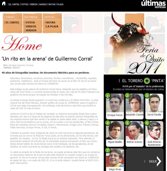 Solo como anécdota, en la feria de ese año mi esposa le compró al ‘Diablo’ Calahorrano una cartera hecha de un capote, que la utiliza cada tanto.
